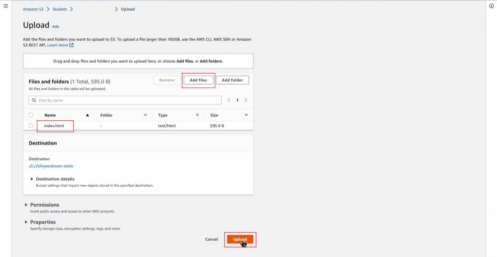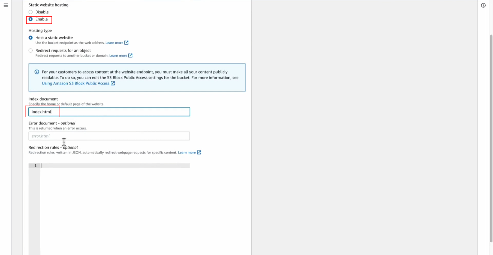 ※ 버킷 이름과 apex 도메인 이름이 같아야 한다.