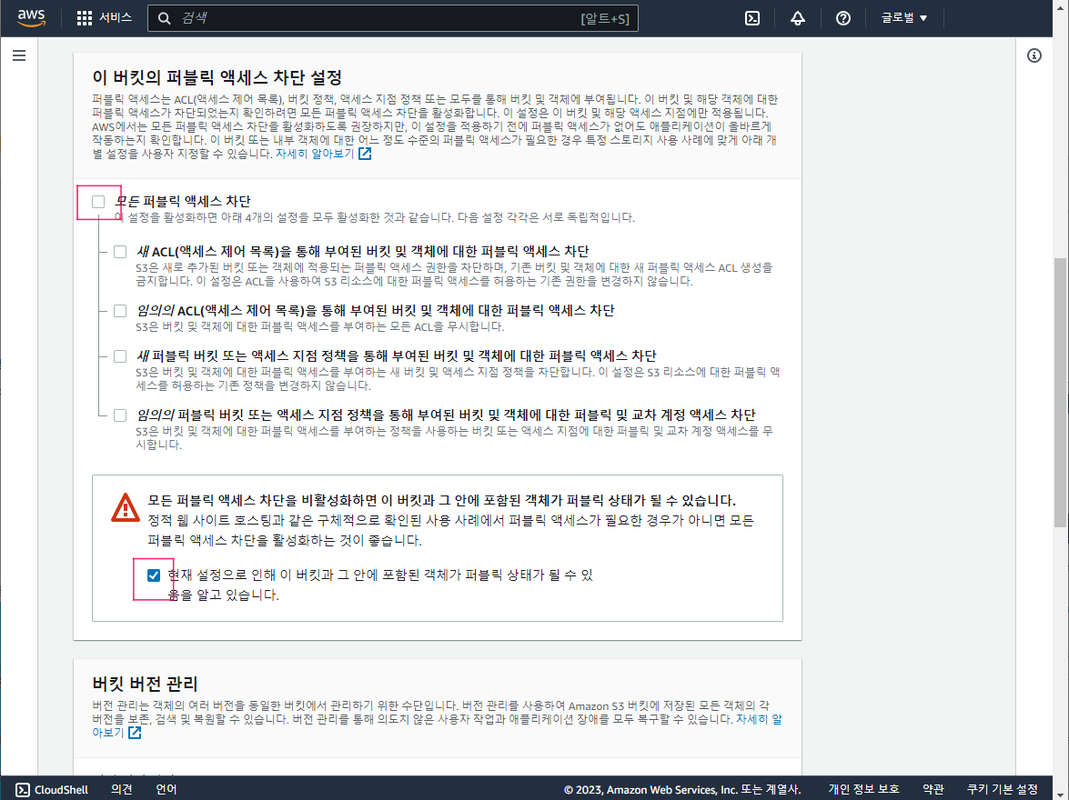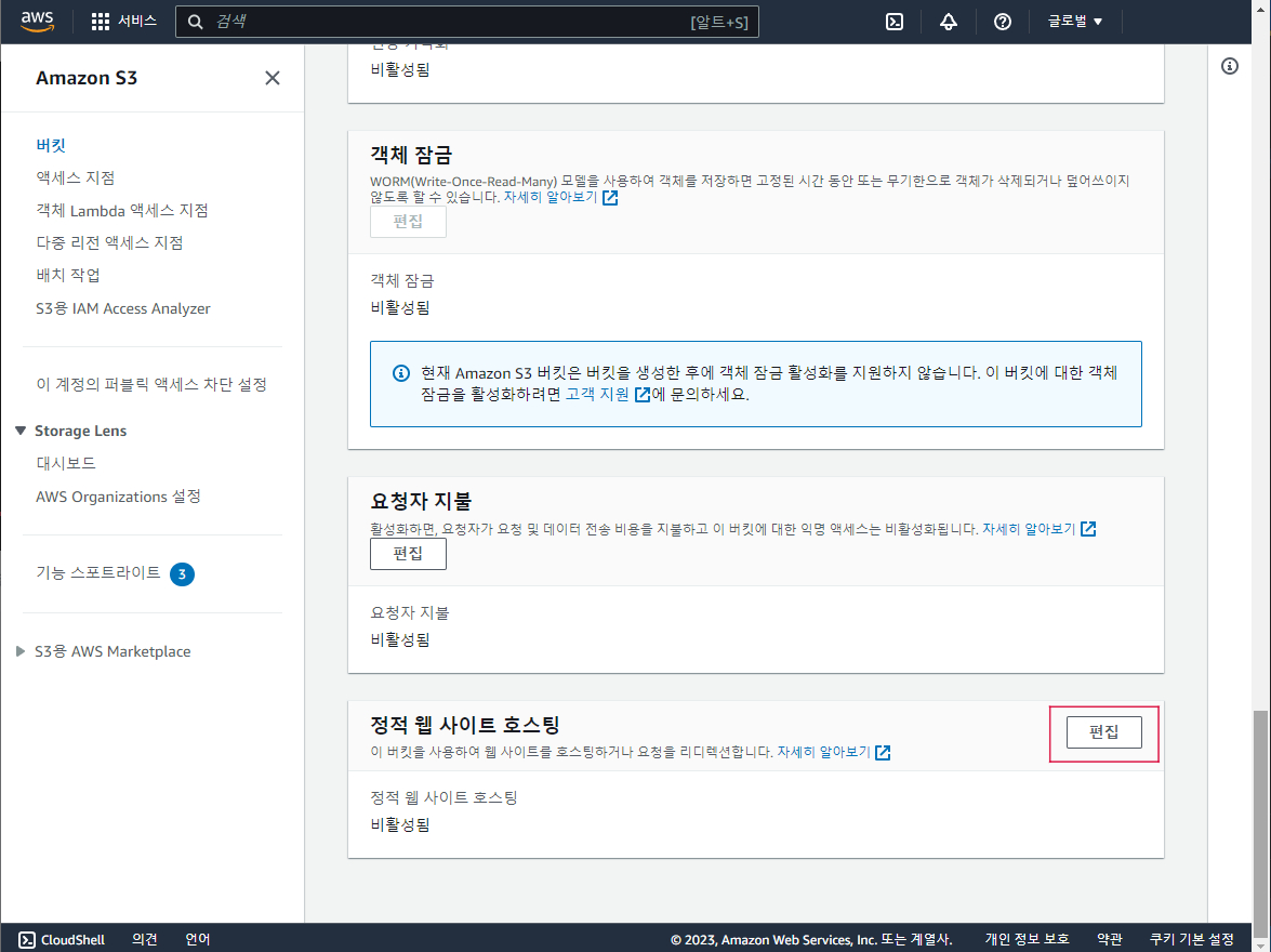 - 버킷 이름은 3자(최소)에서 63자(최대) 사이여야 합니다.