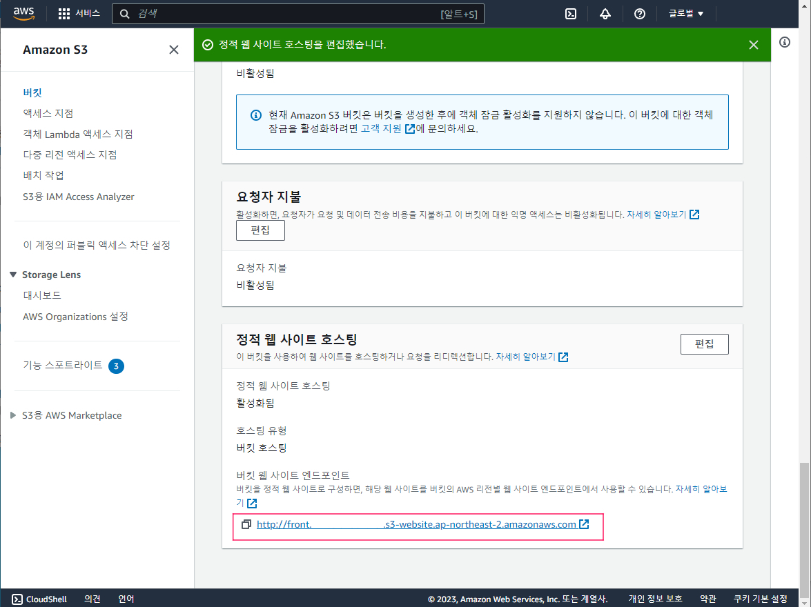 - 버킷 이름은 문자 또는 숫자로 시작하고 끝나야 합니다.
