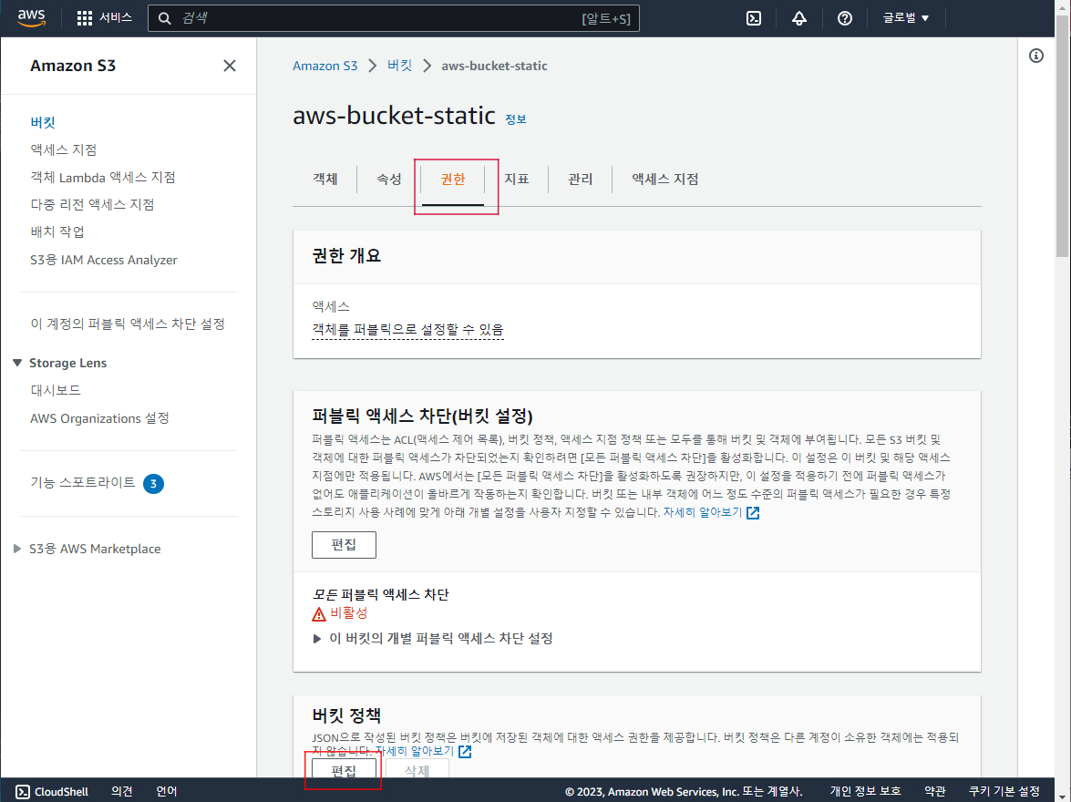 - 버킷의 모든 객체에 대한 액세스를 제어할 수 있습니다.
