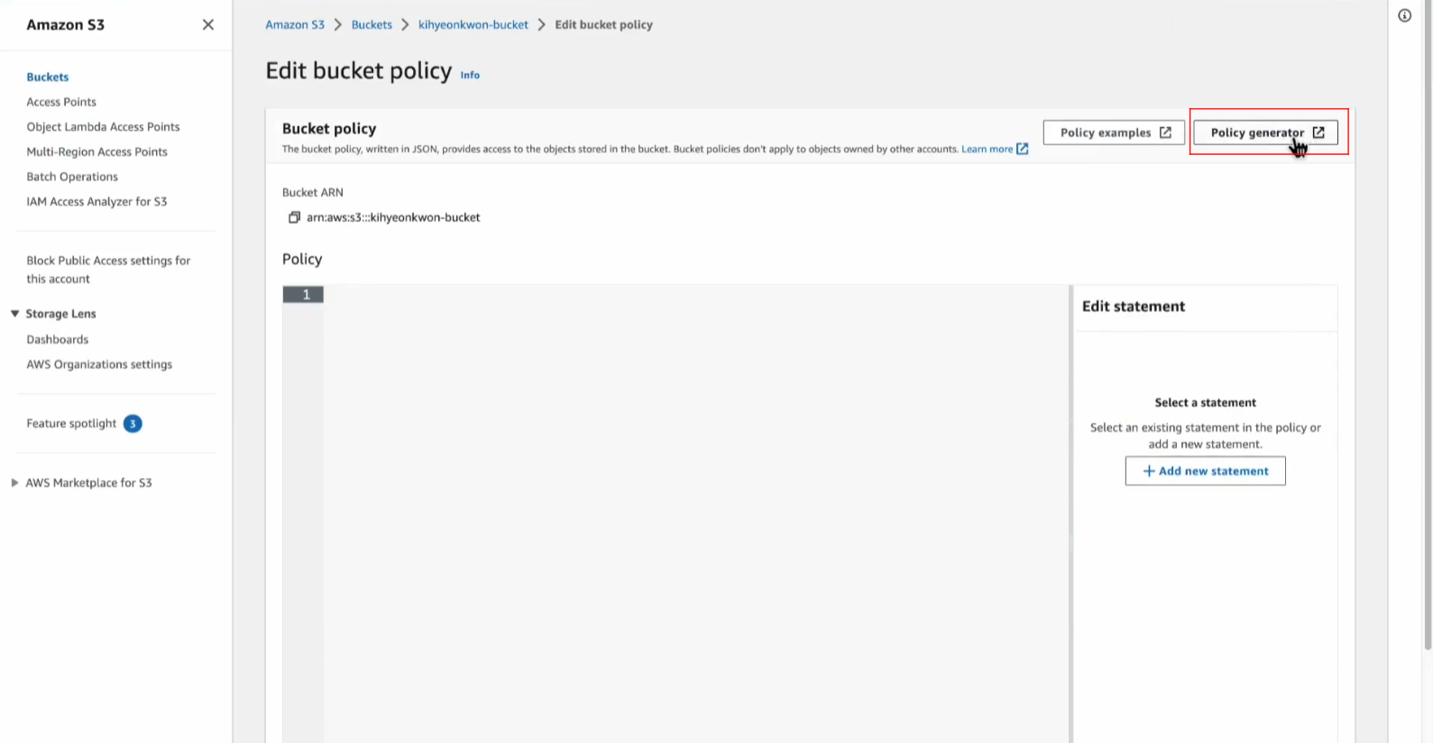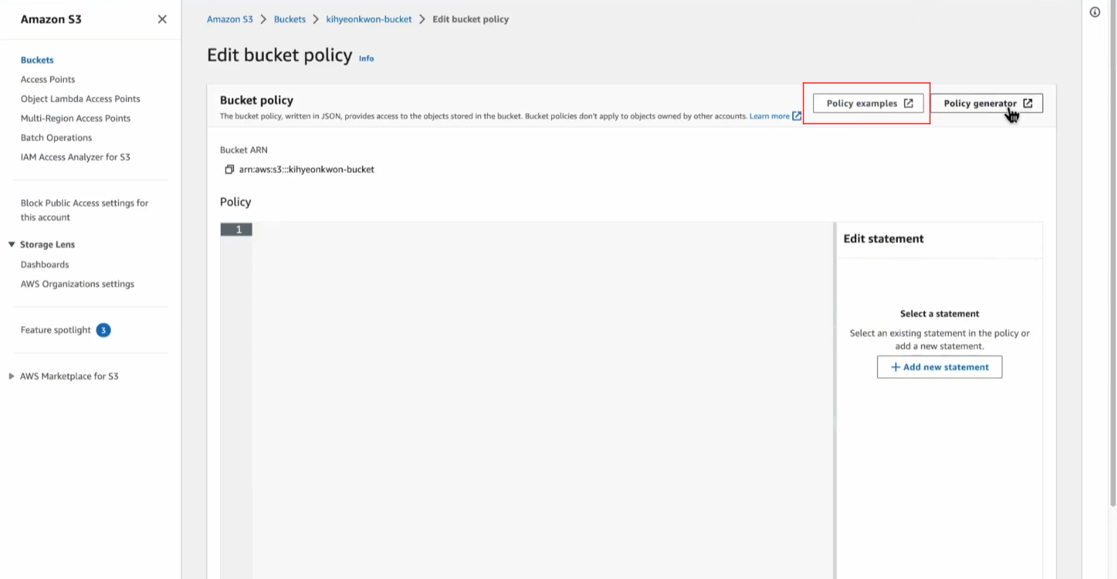 지정된 버킷 "BUCKET-NAME"에 대한 액세스를 허용합니다.
