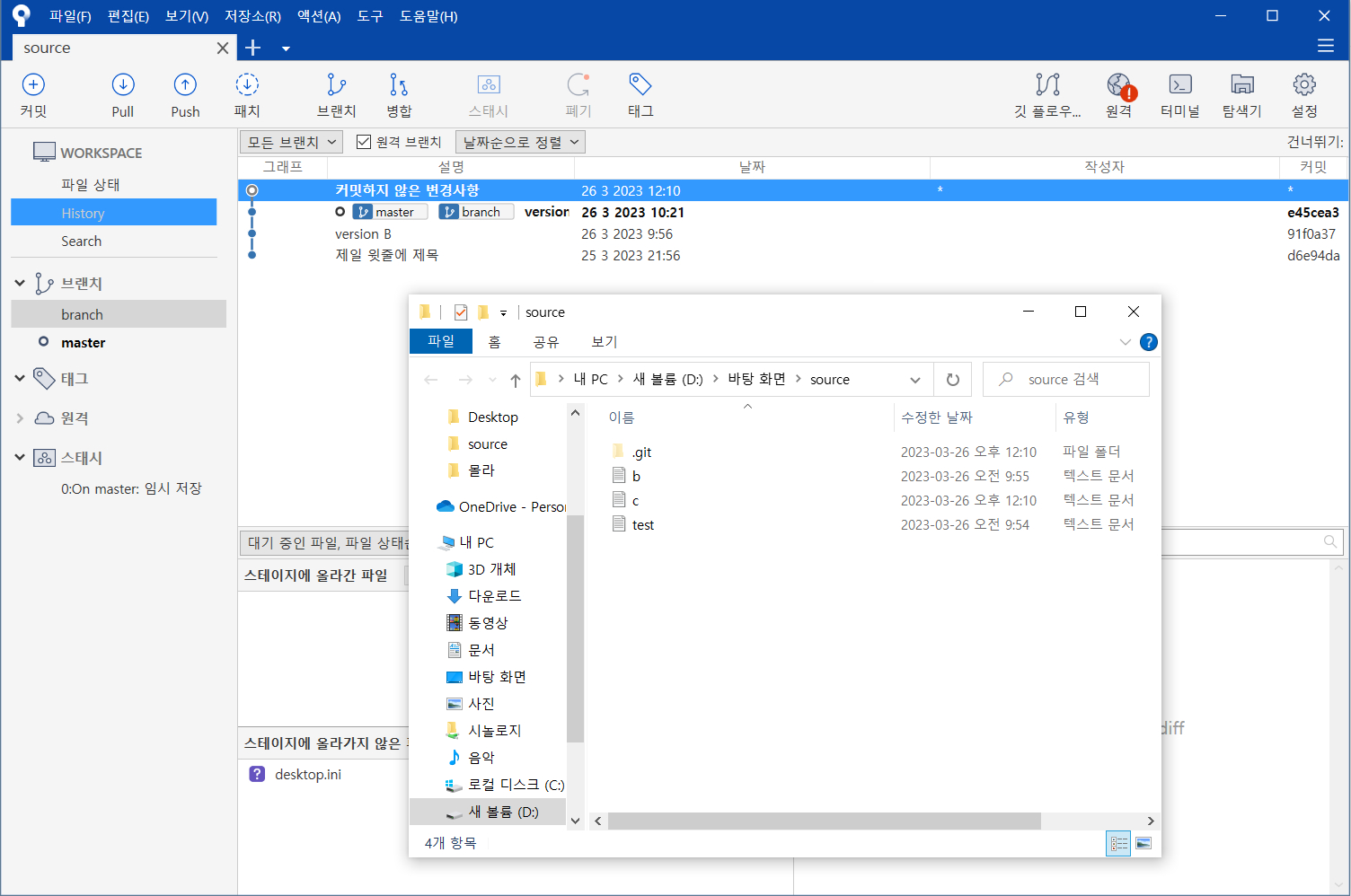 병합 기준(master)이 되는 곳에 헤드가 위치하도록 합니다.