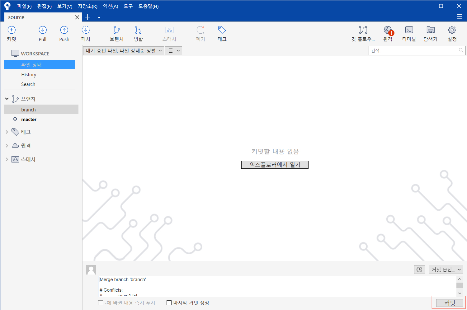 이제 파일 상태로 들어가 커밋 버튼을 눌러줍니다.