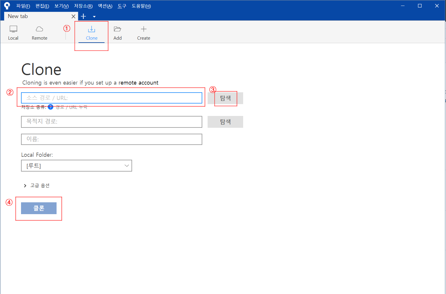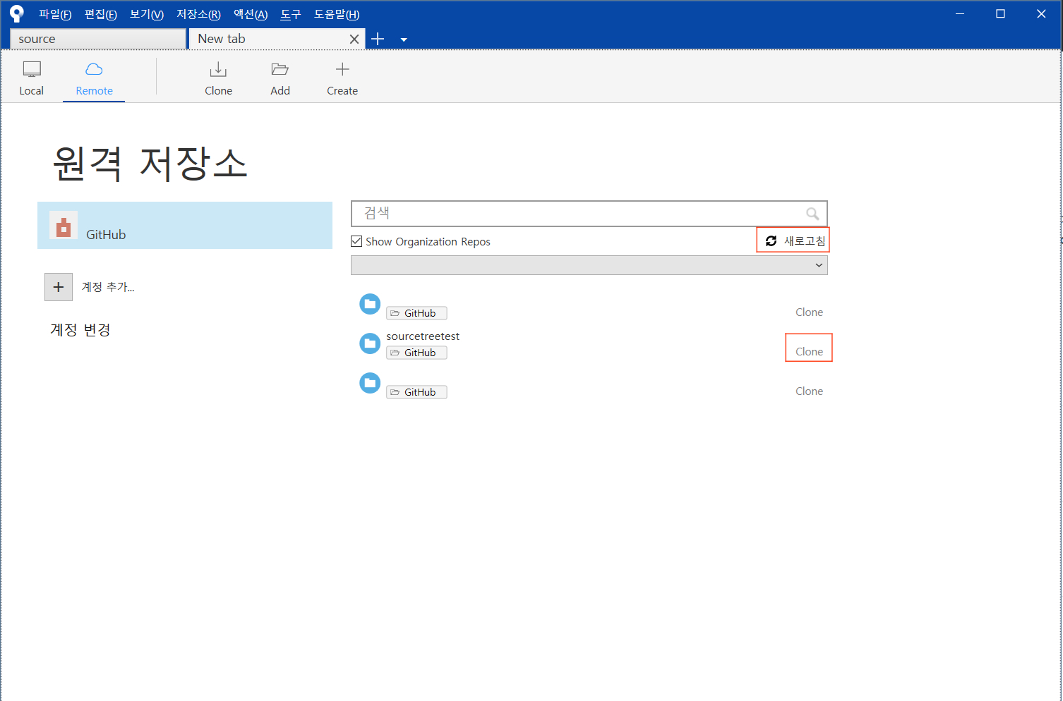 소스트리로 돌아가서 Clone을 클릭합니다.