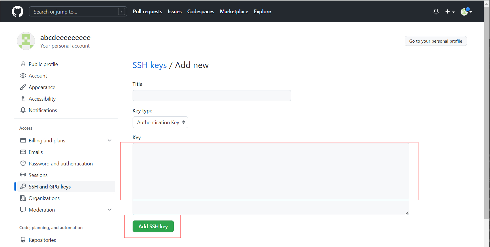 Key는 아까 git bash에서 cat을 입력하시고 난 후 받은 ssh-rsa ~엄청 긴 코드~를 여기에 붙여넣기 합니다.