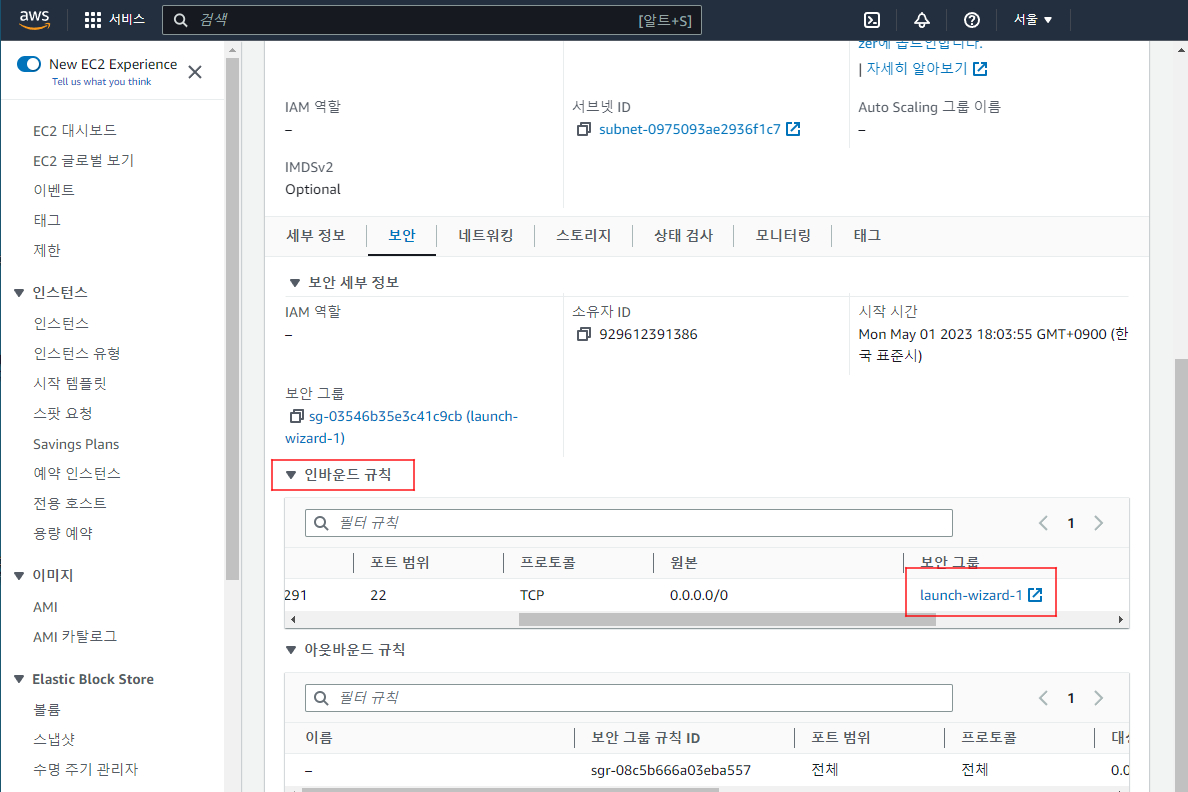 - 모든 inbound는 디폴트로 막혀있습니다.
